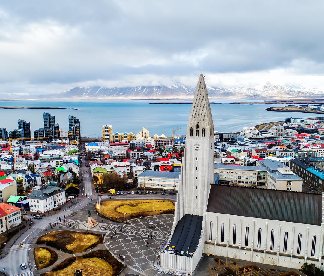 Start at Alþingishúsið, the historic parliament building, which has been the heart of Icelandic politics since 1881. From here you can walk towards Tjörnin, the scenic city pond surrounded by colourful houses and home to many birds, including swans and ducks. It's a peaceful spot, perfect for a quick break. From Tjörnin, head towards Laugavegur, Reykjavík's main shopping street. This lively area is filled with boutiques, cafés, and bars, making it the perfect place to soak in the city's culture. Continue along Rainbow Street (Skólavörðustígur), a picturesque, colourful road leading up to Hallgrímskirkja, Reykjavík’s landmark church with breathtaking views from the top.