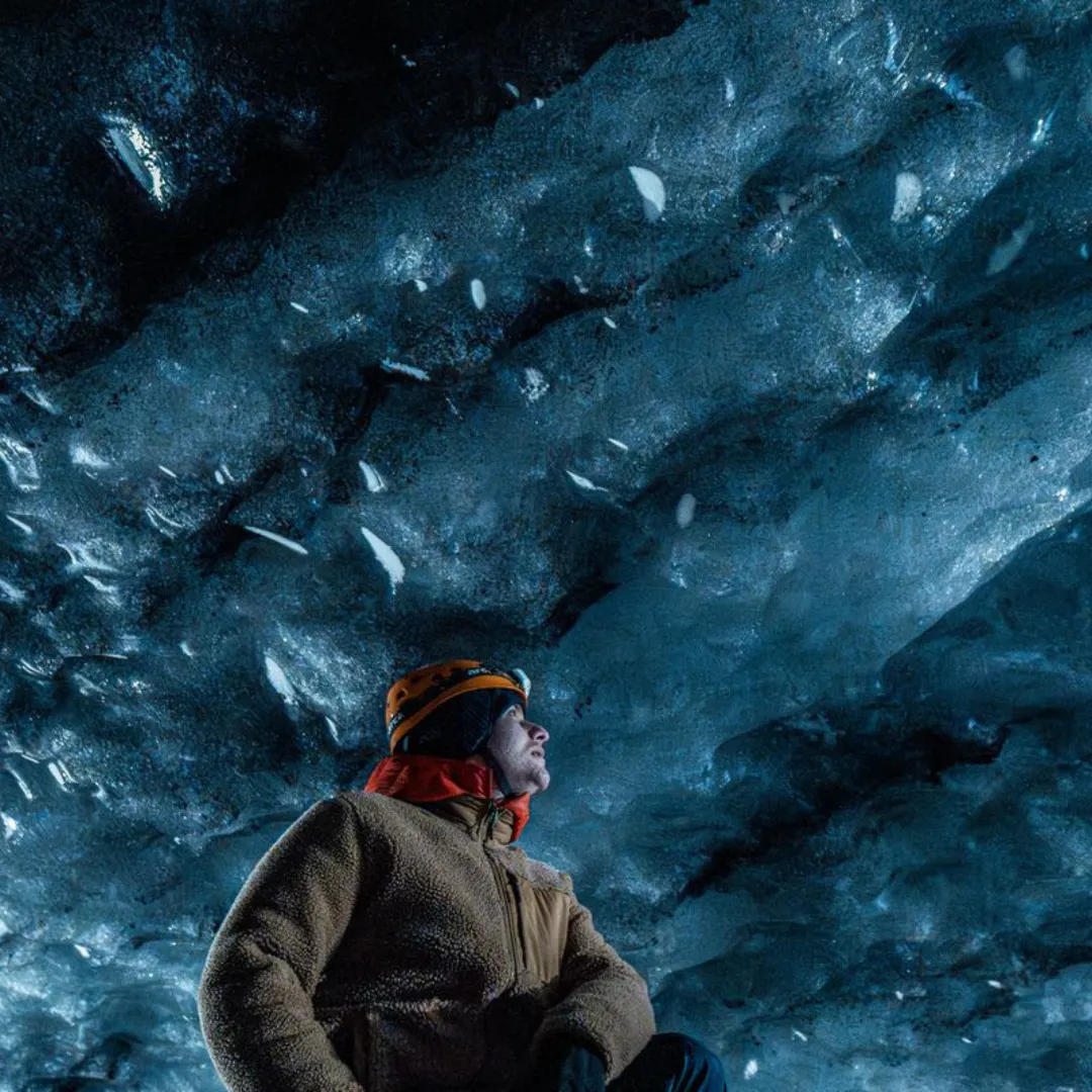 Step inside a glacier and discover stunning blue ice formations.