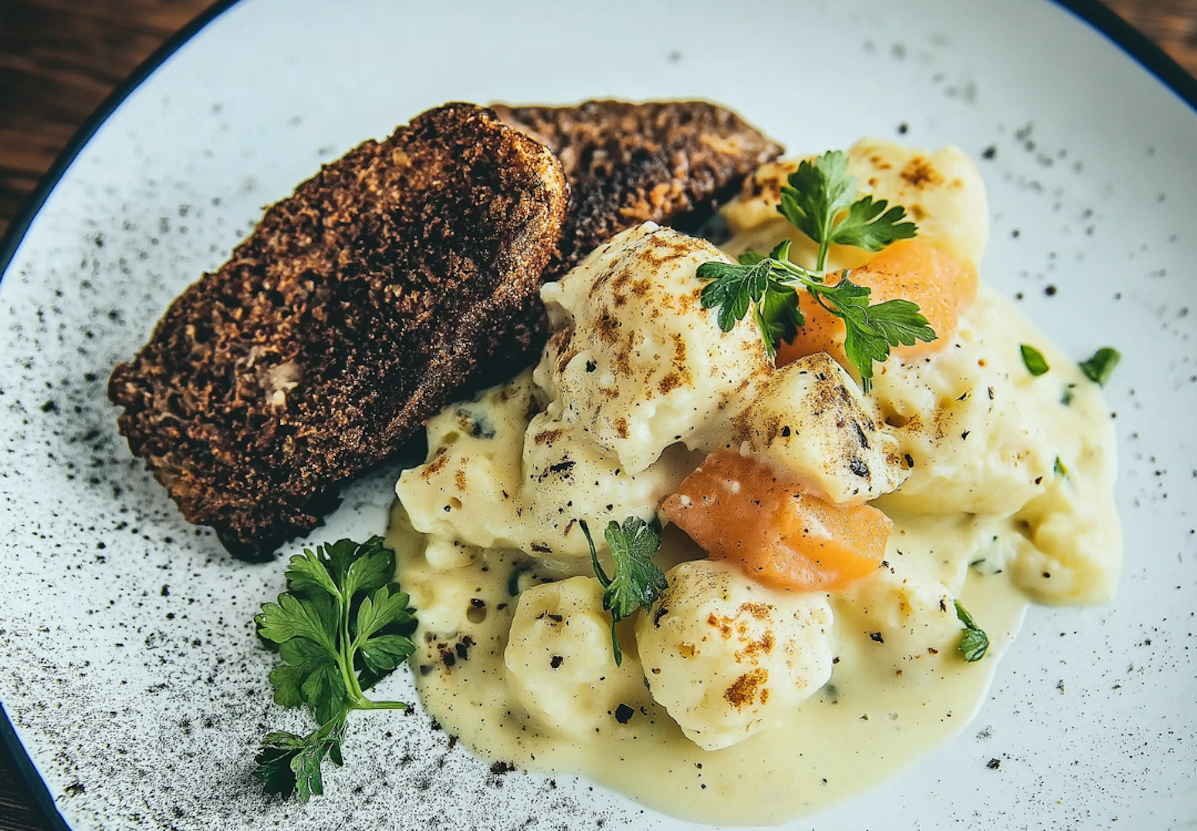 Not everything in Icelandic cuisine is terrifying. Plokkfiskur is a creamy fish stew made with mashed potatoes, white fish, and a buttery sauce. To make it the perfect Icelandic meal, you need to add Rúgbrauð with alot of butter. This meal is warm, hearty, and won’t make you question your life choices.